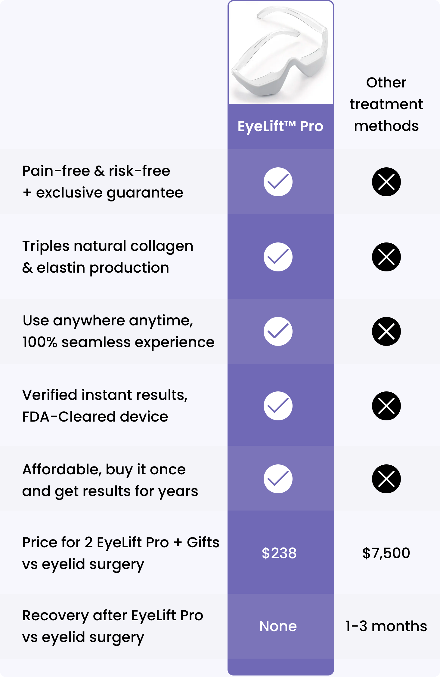 EyeLift™ Pro passed 13 different clinical studies with astonishing results. And it's the only at-home eye care treatment recommended by dermatologists, which makes it the safest, most-effective eye care treatment currently available.